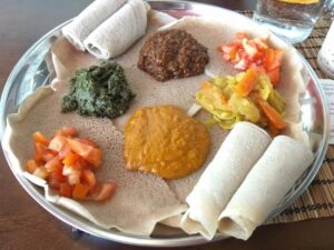 Addis Ethiopian Kitchen is a really nice place. The great thing is that it is easy to share and try everything, as the food of the group is served on one big plate. Also the staff is really nice and willing to help people with Ethiopian table manners (use the injera bread to eat!). Addis Ethiopian Kitchen is also a great option for vegetarians and vegans (and there is a gluten-free option too).