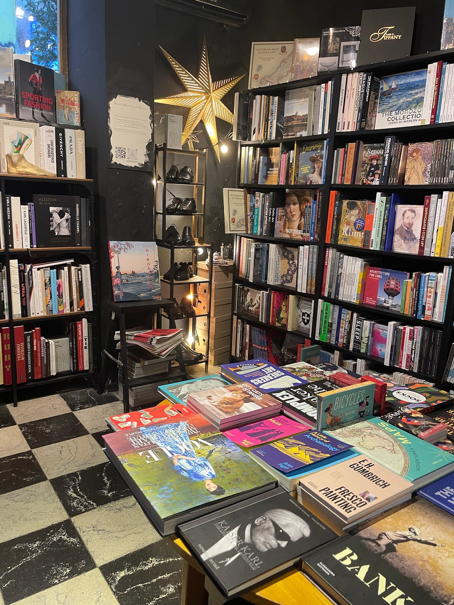 Despite its modest size, Black Mustache bookstore has all the books everyone has drooled over once or twice in their life. The bookstore offers a collection of titles that appeal either because of their rarity or the inspiring and intriguing nature of their subject matter, if not both. As the fabulous, authentically designed, colourful book covers shine from the shelves, it becomes impossible not to spend hours leafing through them.