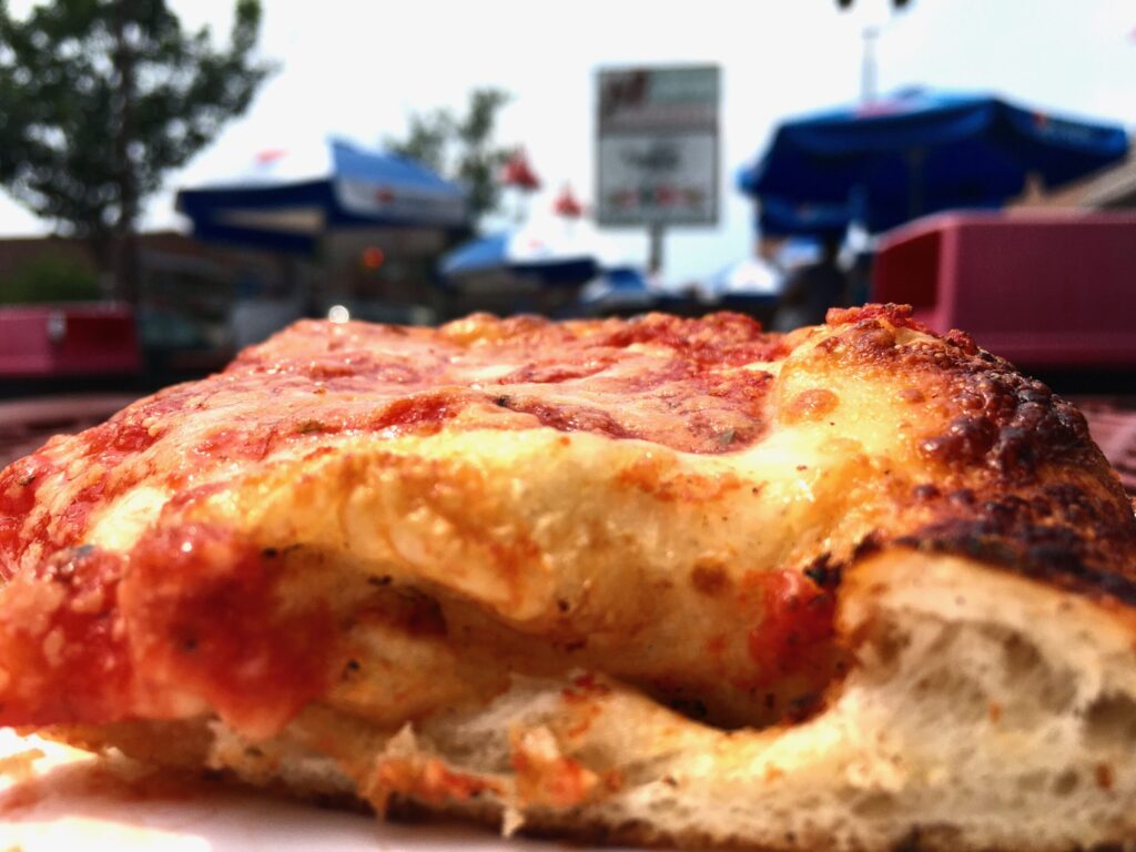 Now, this old-school pizzeria serves as a fair-weather destination because of its outdoor tables-with-umbrellas setup.