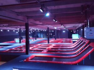 Freestyle Motion is a 2500m2 indoor hall filled with trampolines. Many trampolines. There are regular trampolines, large trampolines for the gymnastics, a tricking floor and a free running parkour -- enough to jump your ass off. You can do somersaults, back flips, spins, basically whatever you are capable of.
