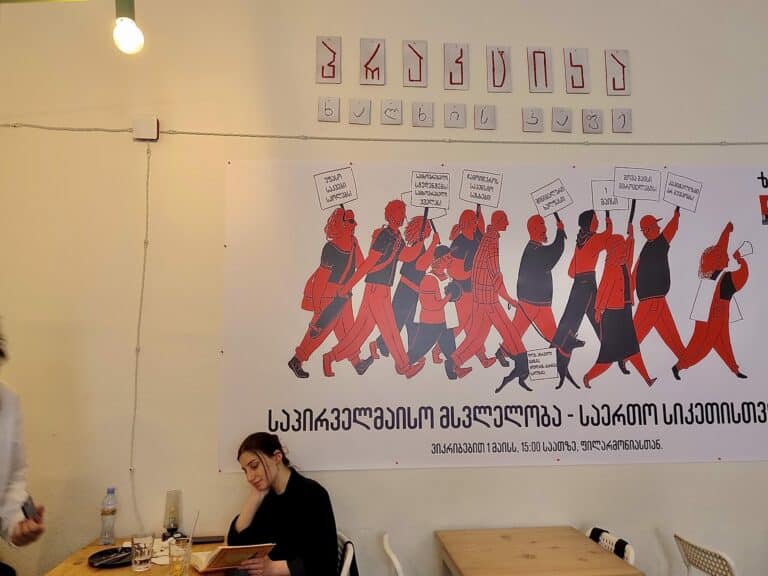 So, whether you happen to be here on May 9th, or any other day of the year, it is worth taking a stroll in Vake Park, the most iconic park in the city, near which two fascinating murals happen to be: a caged man and cartoon characters in the underground crossing.